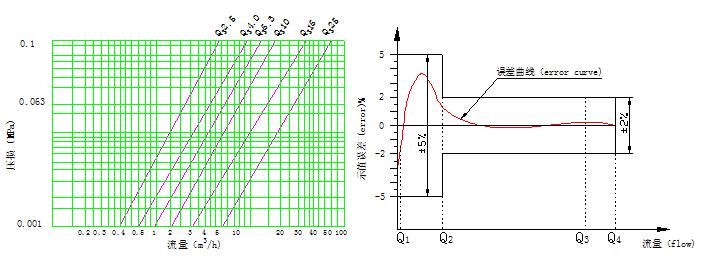 壓力損失曲線 Pressure loss curve 示值誤差限與流量曲線FLOW-ERROR CURVE