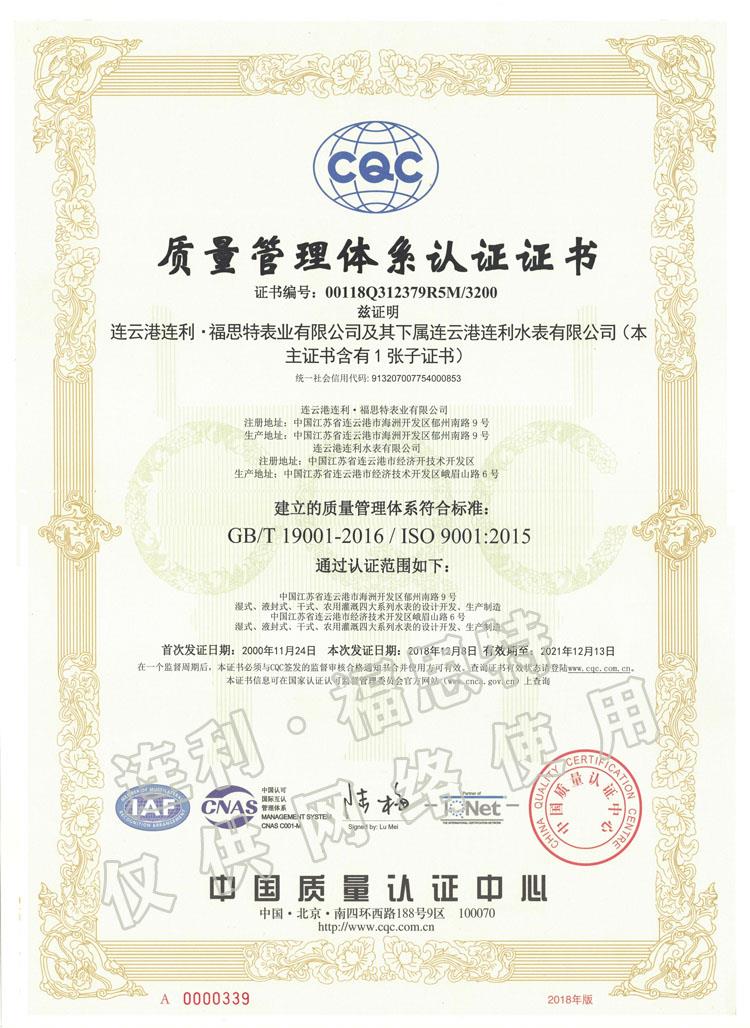 質(zhì)量管理體系認(rèn)證證書(shū)