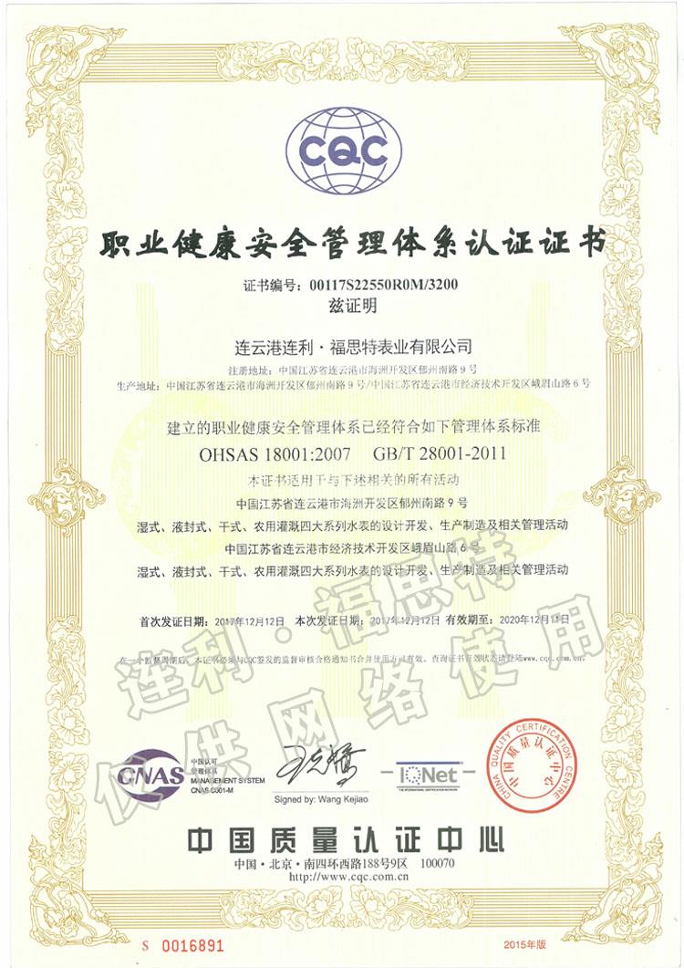 職業(yè)健康安全管理體系認(rèn)證證書(shū)