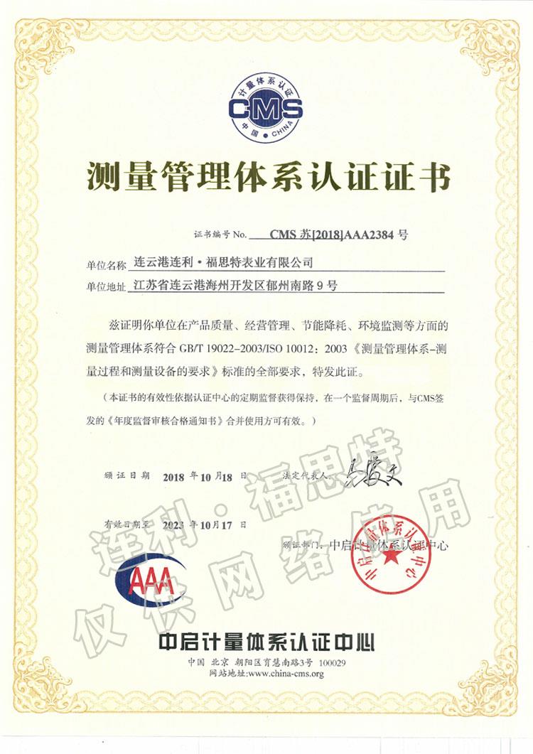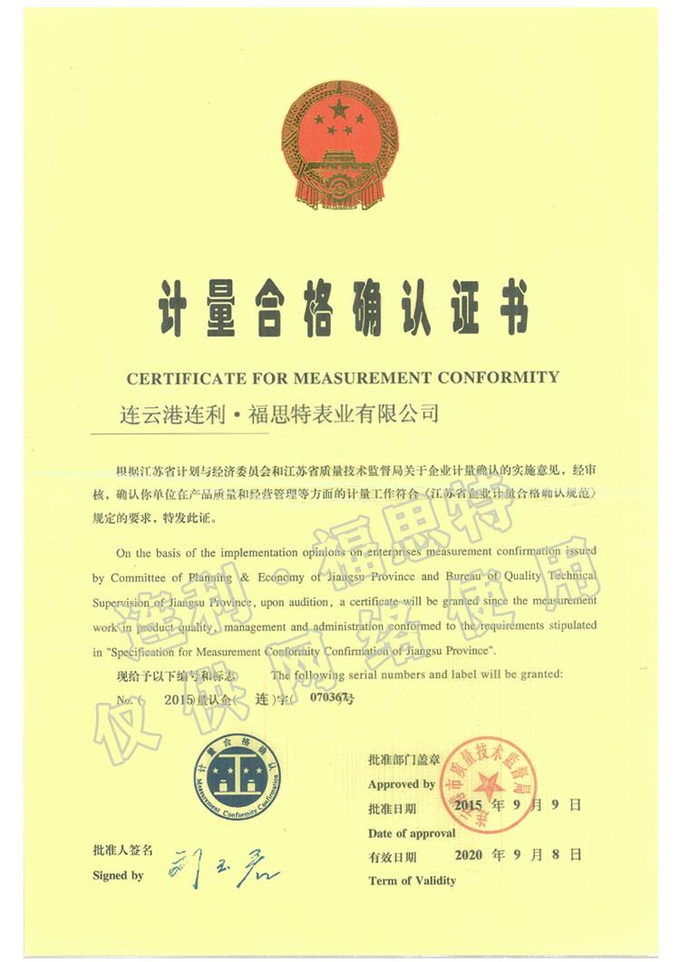 計(jì)量標(biāo)準(zhǔn)考核證書(shū)