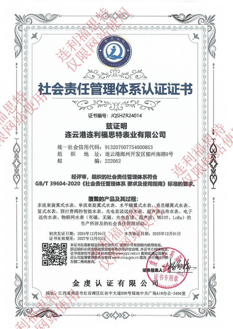 社會責(zé)任管理體系認證證書