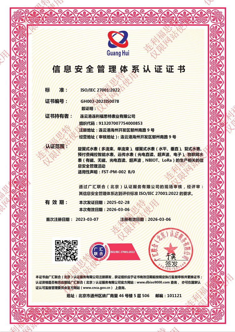 信息安全管理體系認證證書