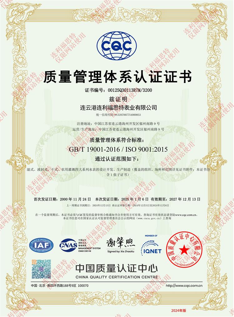 質(zhì)量管理體系認證證書