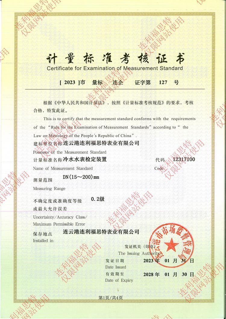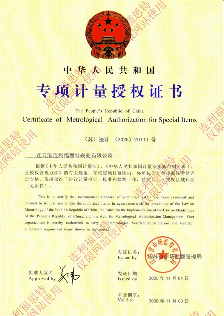 專項計量授權(quán)證書